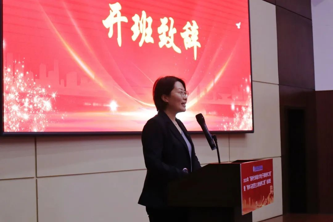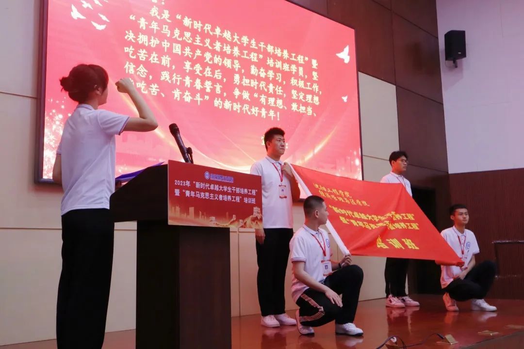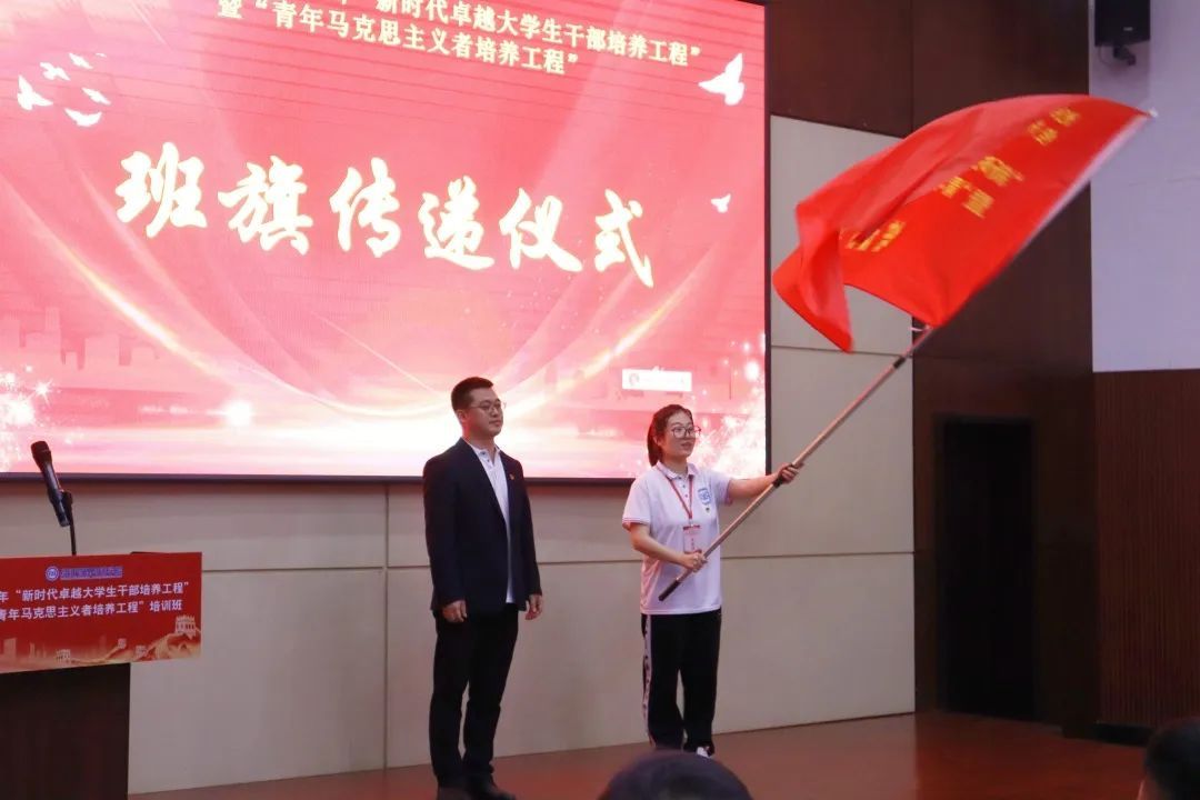 接下来,由太阳集团tyc33455官网党委副书记薛鹏飞为“新时代卓越大学生干部培训工程”暨“青年马克思主义者培养工程”培训班授予班旗。