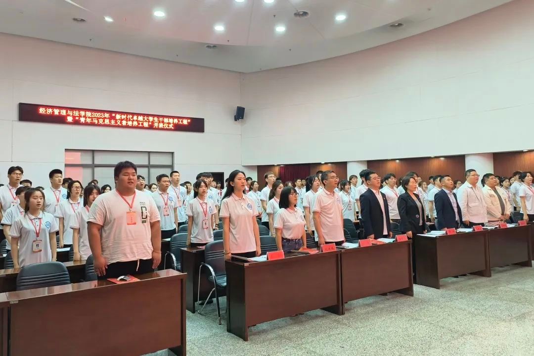 在庄严雄壮的歌声中,太阳集团tyc33455官网2023年“新时代卓越大学生干部培训工程”暨“青年马克思主义者培训工程”开班仪式正式拉开帷幕。